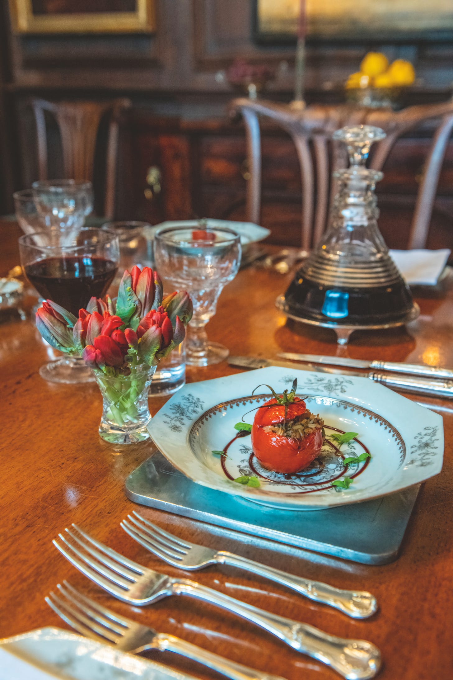 Each course had its specific cutlery, which is where the much-mocked twenty-fork place setting came from. It was choreography. The fork told you what was coming next.