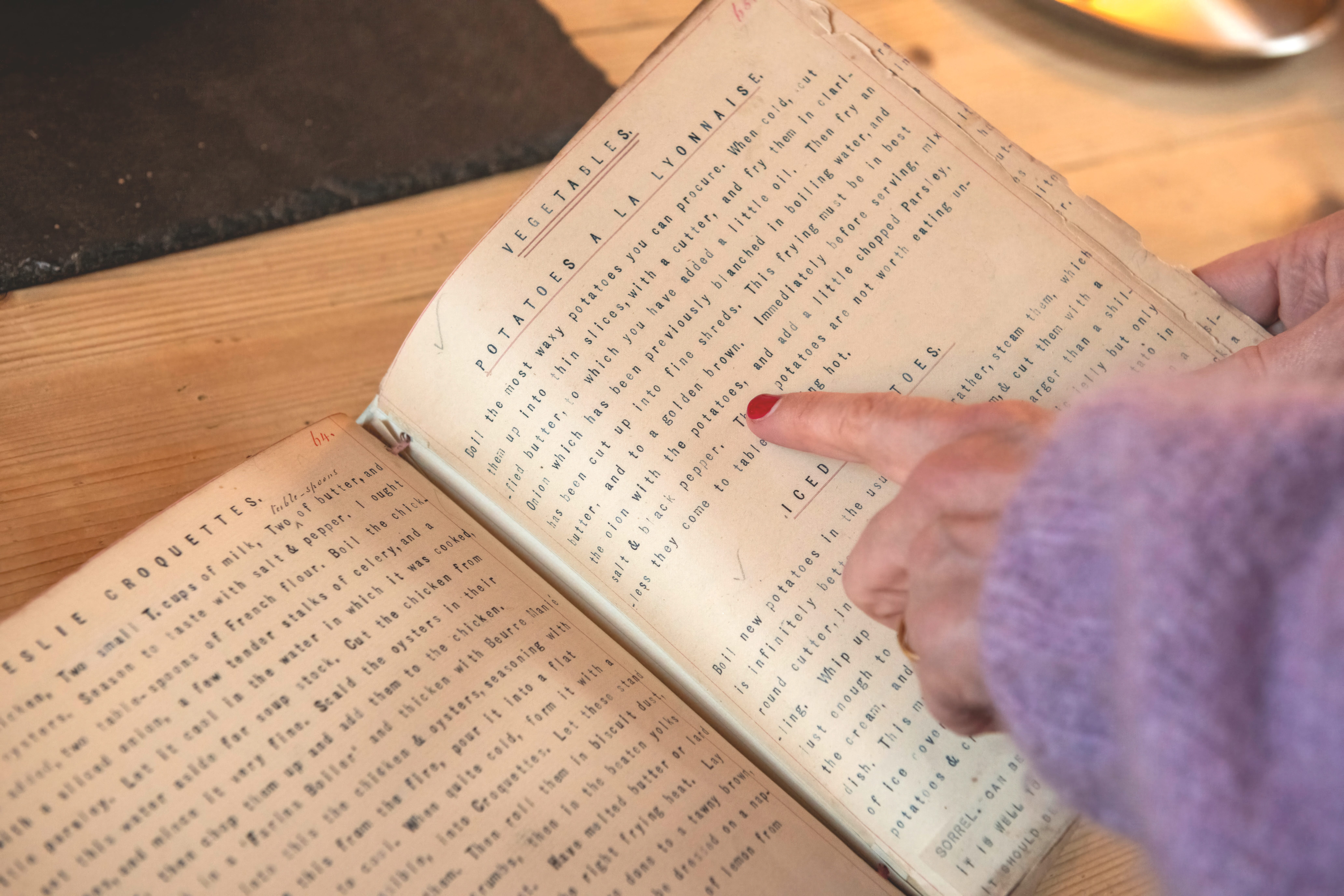 It is not a grand object. It is a small, working, domestic thing: typed pages, the recipes written out in her own clipped, particular voice, the hand of an American woman who had absorbed the French menu of her New York girlhood and was now running an English country house with it.