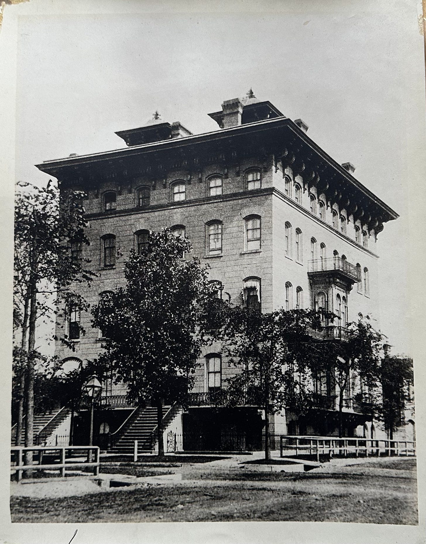 Among the photographs Alberta kept — letters, portraits, fragments of a life lived largely elsewhere — was an image of a house she never knew. A vast family residence in Chicago, built by her grandfather Solomon Sturges, standing solidly at the corner of Pine Street (now Michigan Avenue) and Huron Street. It was already gone by the time she was born, erased not by fashion or redevelopment, but by catastrophe.