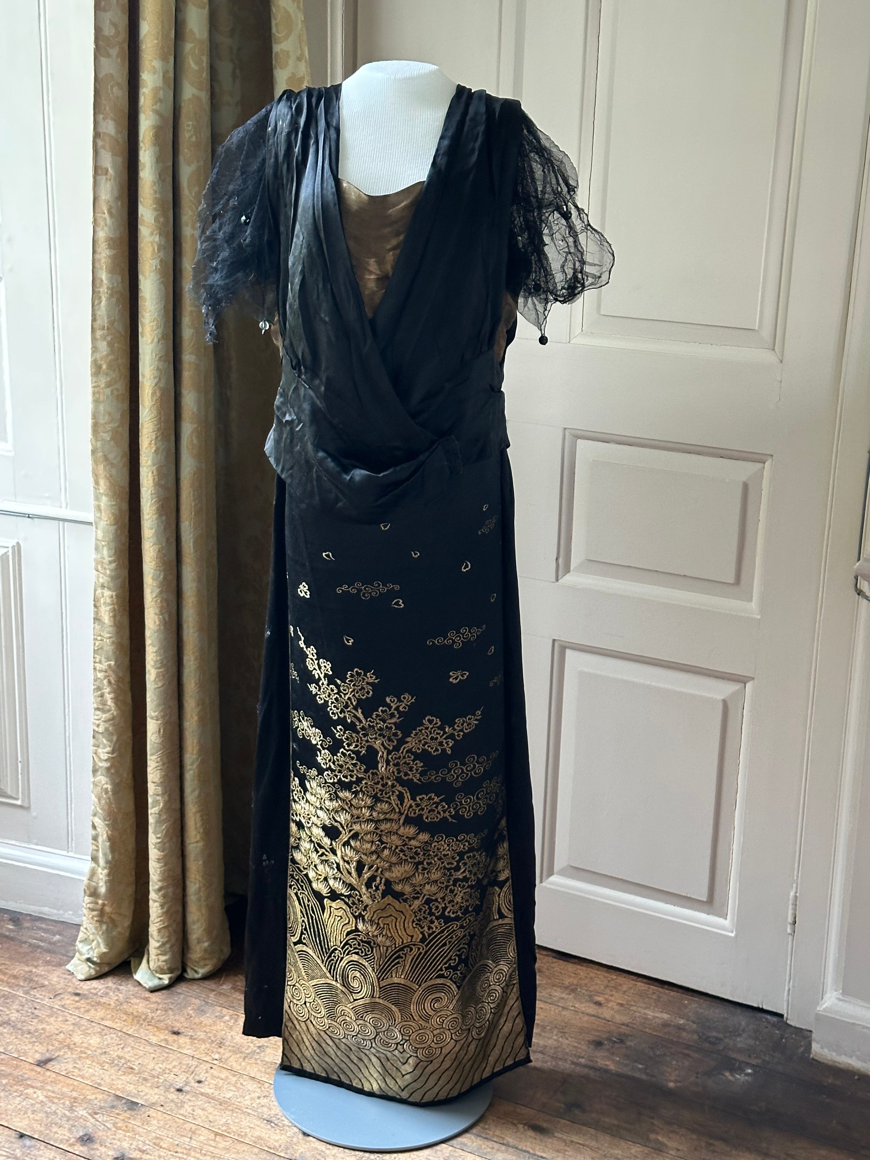 Fast forward to one month later: Alberta’s Worth gown, upright on a mannequin, glowing with black silk and gold embroidery, caught in the light of Mapperton’s windows. It is, quite literally, dazzling. And it will take centre stage in the Mapperton coffee table book - out next year, if I can keep the secret that long.